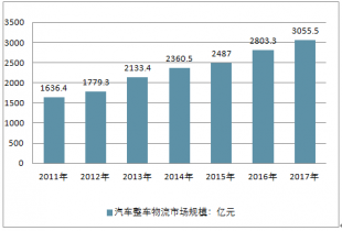 2011-2017我國汽車整車物流市場規(guī)模走勢