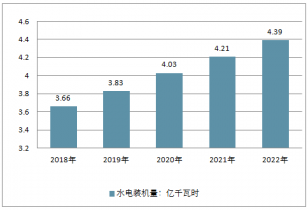 2014年底,我國(guó)水電裝機(jī)總?cè)萘繛?0183萬(wàn)千瓦,同比增長(zhǎng)7.9%;2015年底,我國(guó)水電裝機(jī)總?cè)萘繛?1937萬(wàn)千瓦,同比增長(zhǎng)4.9%;2016年底,水電裝機(jī)總?cè)萘考s33211萬(wàn)千瓦,同比增長(zhǎng)3.9%。預(yù)計(jì),2018年中國(guó)水電裝機(jī)總?cè)萘繉⑦_(dá)到3.66億千瓦,未來(lái)五年年均復(fù)合增長(zhǎng)率約為4.65%,2022年中國(guó)水電裝機(jī)總?cè)萘繉⑦_(dá)到4.39億千瓦。