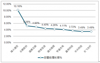 2017年光纖光纜行業(yè)主要上市企業(yè)總營(yíng)收增長(zhǎng)率