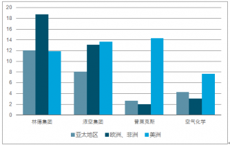 2017年全球四大氣體巨頭營業利潤分區域對比情況