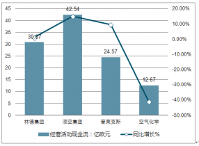 2017年全球四大氣體巨頭經營活動現金流及增長情況對比