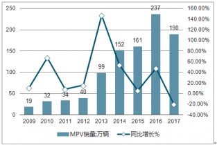 2009-2017年中國MPV銷量及同比增速走勢