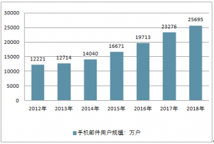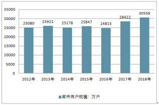 在2018上半年中國郵件用戶規模及使用情況中,數據顯示,2018上半年中國郵件用戶規模為3.06億人,與2017年末相比增長2134萬人,在整體網民數量中郵件用戶數比例達到38.1%。
