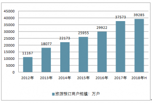 2012-2018年中國旅游預訂用戶規(guī)模走勢
