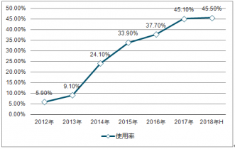 2012-2018年中國旅游預訂用戶使用率走勢