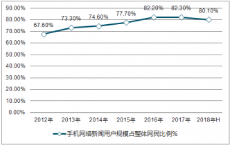 2012-2018年上半年中國手機網絡新聞用戶規模占整體網民比例情況