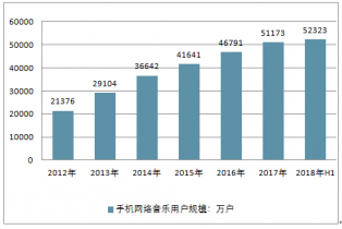 2012-2018年上半年中國(guó)網(wǎng)絡(luò)音樂(lè)用戶規(guī)模走勢(shì)