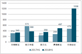 1H17 -1H18電視劇制作公司經(jīng)營性現(xiàn)金流凈額(單位:百萬元)