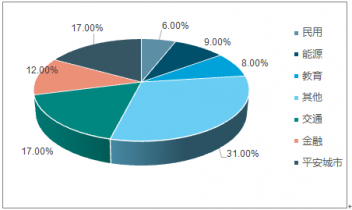 下游行業分布來看,平安城市和智能交通是安防行業需求最大的兩個領域,合計占有44%的市場份額。在視頻監控領域,兩者也是最大的需求方,合計占比34%。