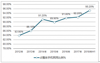 2012-2018年上半年中國(guó)手機(jī)即時(shí)通信用戶占整體手機(jī)網(wǎng)民比例走勢(shì)