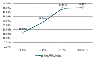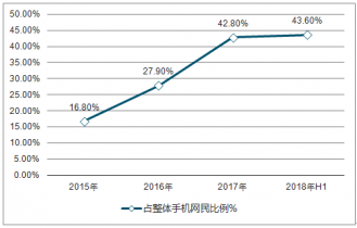 2015-2018年上半年中國手機網(wǎng)上訂外賣用戶規(guī)模占整體手機網(wǎng)民比例走勢