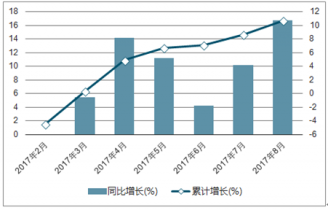 2017年1-8月開采輔助活動(dòng)增加值進(jìn)行監(jiān)測統(tǒng)計(jì)顯示:2017年8月開采輔助活動(dòng)增加值同比增長16.7%,2017年1-8月開采輔助活動(dòng)增加值累計(jì)增長10.7%。