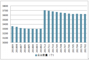 2017-2018年中國非金屬礦采選企業(yè)數(shù)量走勢