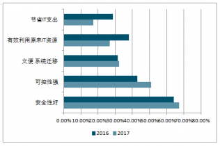 在受訪企業(yè)中,分別有67.2%和51%的企業(yè)出于安全性好和可控性強而選擇使用私有云。安全性和可控性依舊是企業(yè)選擇使用私有云最重要的因素。與2016年相比,企業(yè)對于可控性的關(guān)注度有較大幅度的提升(8.1%)。