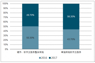 56.3%的受訪企業(yè)傾向于單獨采購軟件及服務(wù),相比于2016年提高了6.6%.隨著硬件設(shè)備標準化程度和軟件異構(gòu)能力的提升,軟硬件兼容性問題得到了較大程度的緩解。