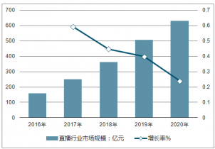 2016-2020年中國直播行業(yè)市場規(guī)模及增長率走勢