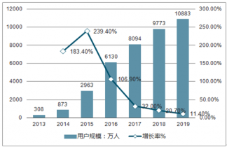 2013年-2019年中國網(wǎng)絡(luò)視頻用戶付費規(guī)模