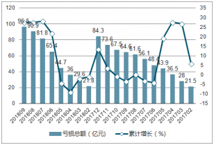 2017-2018年中國食品制造業虧損企業虧損總額走勢