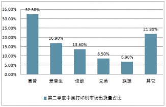 2018年第二季度,中國打印設備市場出貨量排名前五的廠商分別是惠普(32.3%)、愛普生(16.9%)、佳能(13.6%)、兄弟(8.5%)和聯(lián)想(6.9%),其中排名第.一的惠普銷量是愛普生的兩倍。而惠普品牌優(yōu)勢明顯。激光打印市場中,惠普品牌市場份額最高;在噴墨市場中,愛普生、佳能和惠普基本三分天下。在中國打印市場,激光技術主要應用在商用辦公領域,中小企業(yè)數(shù)量的增加和行業(yè)采購需求的穩(wěn)定是激光打印市場穩(wěn)步增長的主要動力。