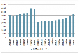 2017-2018年中國紡織業(yè)虧損企業(yè)數(shù)量走勢