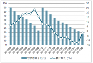 2017-2018年中國紡織業(yè)虧損企業(yè)虧損總額走勢
