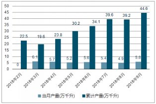 2018年2-9月中國葡萄酒各月當(dāng)月產(chǎn)量及累計產(chǎn)量走勢