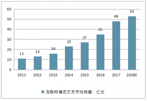 2011-2018年中國互聯網婚戀交友市場規模走勢