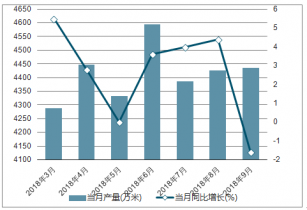 2018年2-9月中國蠶絲及交織機織物(含蠶絲≥50%)各月當月產(chǎn)量及同比增長走勢