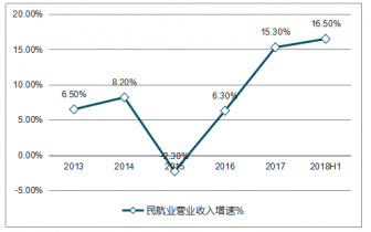 2013-2018年上半年中國民航業(yè)營業(yè)收入增速走勢