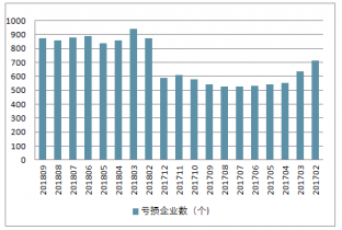 2017-2018年中國(guó)木材加工和木、竹、藤、棕、草制品業(yè)虧損企業(yè)數(shù)量走勢(shì)