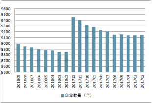 2017-2018年中國(guó)木材加工和木、竹、藤、棕、草制品業(yè)企業(yè)數(shù)量走勢(shì)
