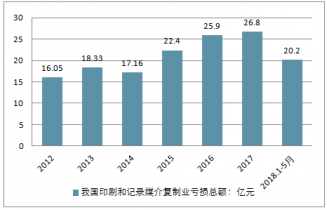 截至2018年5月,我國印刷和記錄媒介復制業(yè)企業(yè)利潤總額為171億元,虧損總額20.2億元,虧損深度為11.81%。