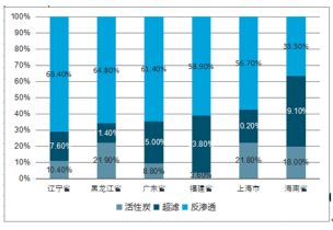 2017年部分省市凈水器產(chǎn)品技術(shù)格局(零售量份額)