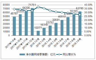 2017-2018年中國凈水器網(wǎng)絡(luò)零售額及增長速度