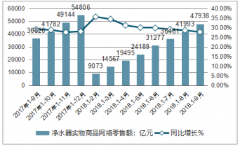 2017-2018年中國凈水器實物商品網(wǎng)絡(luò)零售額及增長速度