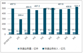 2017年,全國快遞服務(wù)企業(yè)完成國際及港澳臺快遞業(yè)務(wù)量8.3億件,是2013年的3.2倍。2018年9月份,全國快遞服務(wù)企業(yè)業(yè)務(wù)量完成44.8億件,同比增長24.1%,業(yè)務(wù)收入完成531.1億元,同比增長18.5%。2018年1-9月,全國快遞服務(wù)企業(yè)業(yè)務(wù)量累計完成347.4億件,同比增長26.8%;業(yè)務(wù)收入累計完成4246.3億元,同比增長24%。其中,同城業(yè)務(wù)量累計完成79.7億件,同比增長24.8%。異地業(yè)務(wù)量累計完成259.8億件,同比增長27.1%。國際/港澳臺業(yè)務(wù)量累計完成7.9億件,同比增長39.3%。