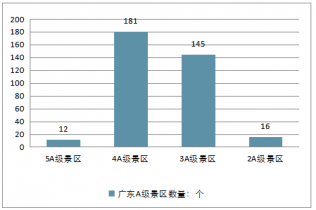 截至2018年6月,廣東省A級(jí)景區(qū)數(shù)量達(dá)到354家,其中5A級(jí)景區(qū)數(shù)量12個(gè),4A級(jí)景區(qū)181個(gè),3A級(jí)景區(qū)145個(gè),2A級(jí)景區(qū)數(shù)量16個(gè)。