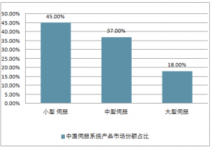 在伺服系統(tǒng)產(chǎn)品市場份額情況中,小型伺服占比為45%,中型伺服為37%,大型伺服為18%。