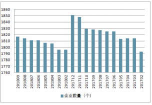 2017-2018年中國(guó)化學(xué)纖維制造業(yè)企業(yè)數(shù)量走勢(shì)