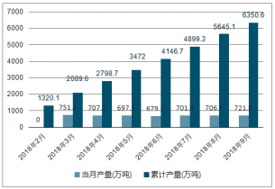2018年2-9月中國初級形態塑料各月當月產量及累計產量走勢