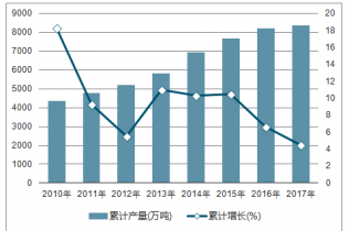2010-2017年中國初級形態塑料產量及同比比增長走勢