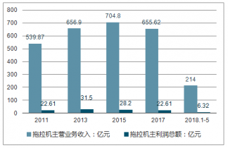 中國拖拉機(jī)主營業(yè)務(wù)收入及利潤總額走勢