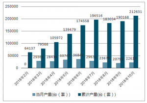 2018年2-10月中國大氣污染防治設備各月當月產量及累計產量走勢