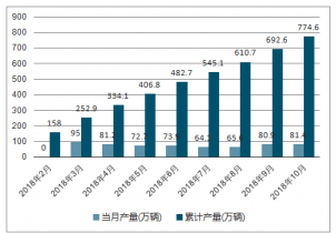 2018年2-10月中國運動型多用途乘用車(SUV)各月當(dāng)月產(chǎn)量及累計產(chǎn)量走勢