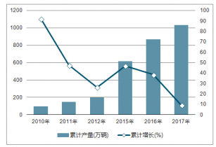 圖表:2009-2018年中國運動型多用途乘用車產(chǎn)量及其增速走勢圖