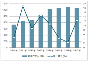 2010-2018年中國(guó)合成洗滌劑產(chǎn)量及同比增長(zhǎng)走勢(shì)