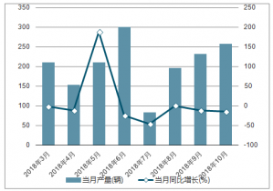2018年2-10月中國(guó)動(dòng)車組各月當(dāng)月產(chǎn)量及同比增長(zhǎng)走勢(shì)