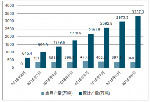 2010-2018年中國合成纖維產(chǎn)量及同比增長走勢