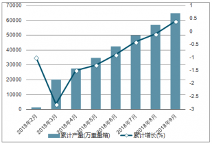 2018年2-9月中國(guó)平板玻璃各月累計(jì)產(chǎn)量及同比增長(zhǎng)走勢(shì)