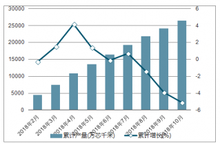 2018年2-10月中國光纜各月當月產量及同比增長走勢
